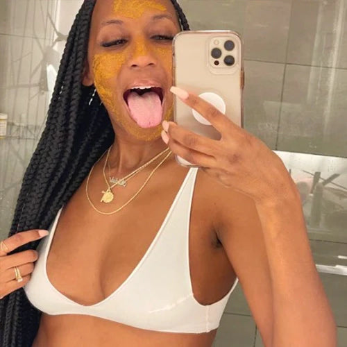 "OMG! This exfoliating scrub is a game-changer! My skin feels so smooth and the turmeric magic leaves a glow like no other. Plus, it helped with the pesky heels. Total spa vibes at home! I can't get enough of it. Highly recommend to all my girls out there!"